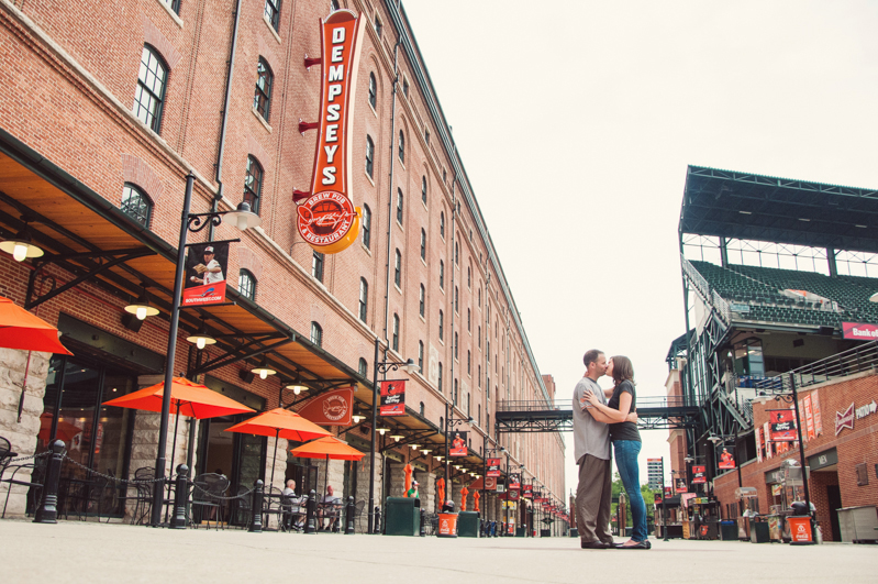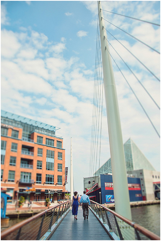 I flew up to Baltimore proper for the day, and we ran around town shooting their guerrilla-style engagement session. Shooting things this way, be it wedding day portraits, engagement sessions, or day after sessions, is one of my favorite things to do. We explored the city, and I found out that Baltimore has one of the COOLEST aquariums I’ve ever seen {glass building rainforest habitat?! Yes!}. We also walked by the bay, found one of the best hills I’ve ever seen with a great view of the city, and visited the Orioles’ stadium.