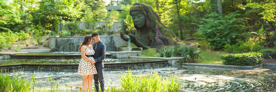 Travis proposed to Savannah right in front of the huge green goddess you see below, and it remains one of their favorite features at the Gardens. So when we met up to brainstorm together, coming up with an Atlanta Botanical Gardens engagement session was almost a no-brainer.
