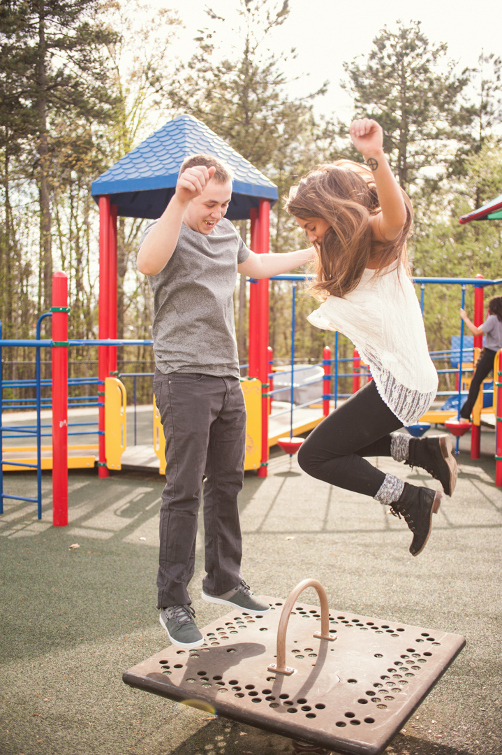 We chose to shoot on a local playground, one that Kellie & her brother have both frequented in the past. The first half of the shoot was dedicated to the playground: being completely weird and goofy and really bringing out their inner playful children, while the second half was dedicated to hurling colored powder at each other.