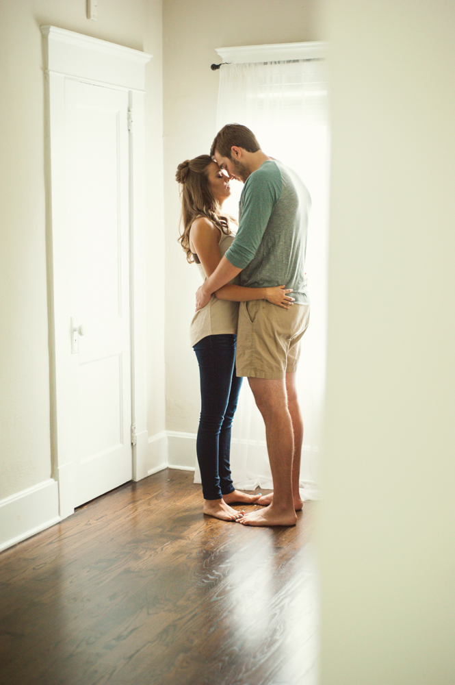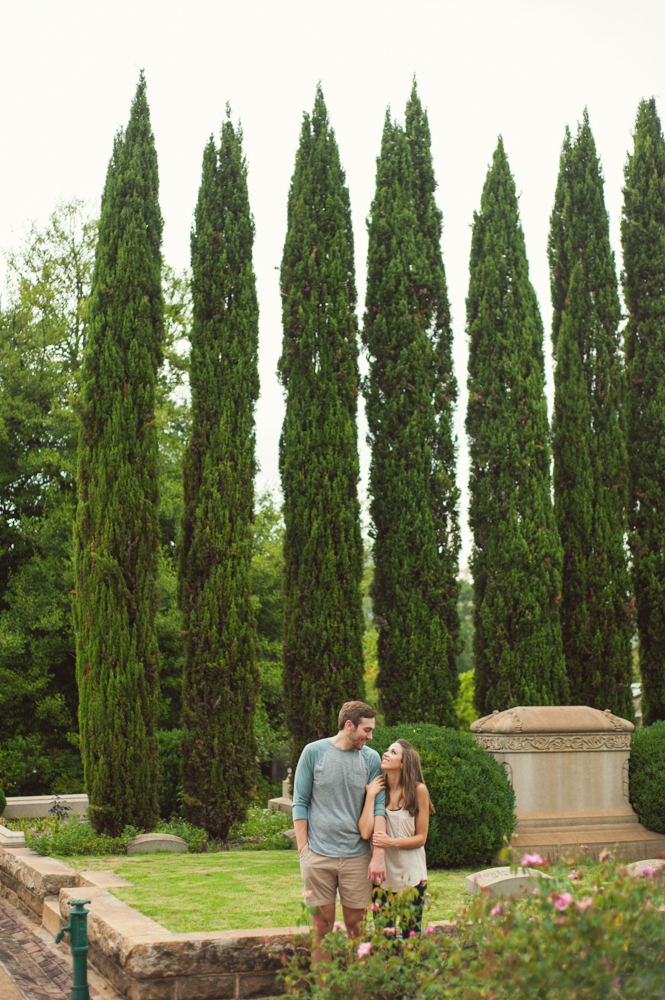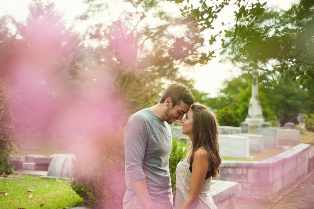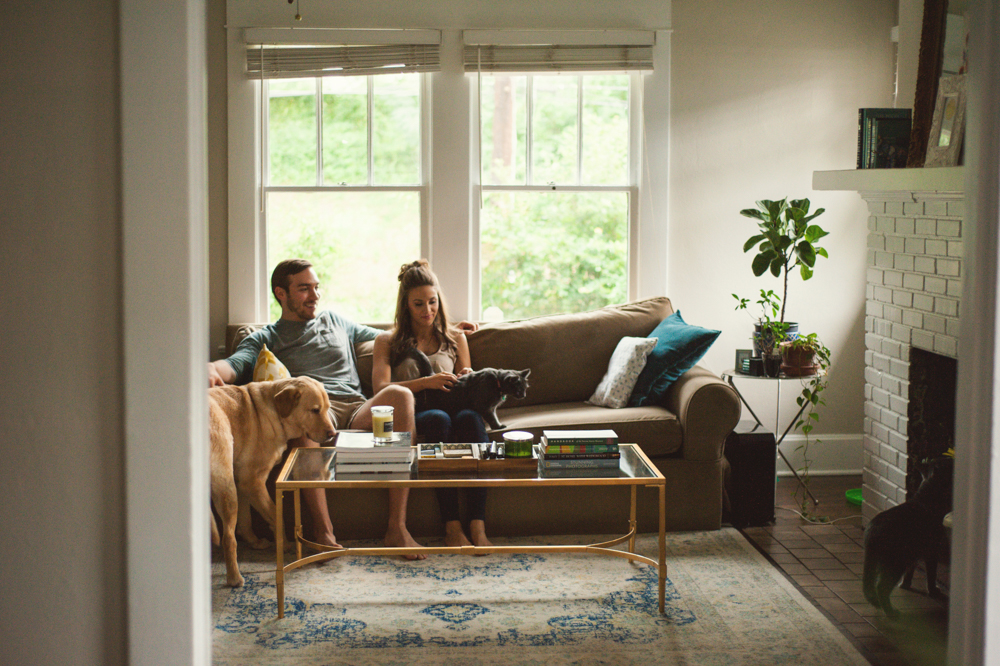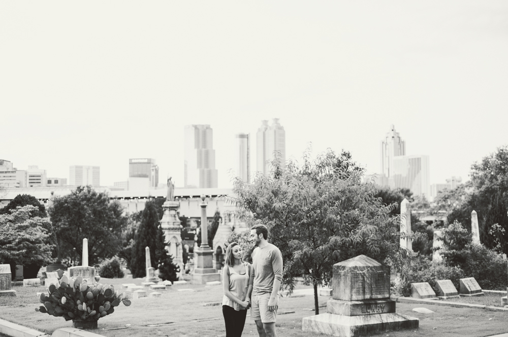 Jess & Matt’s engagement session was one part in-home and one part cemetery. Oakland Cemetery is an Atlanta cemetery and park known for being both historical and completely gorgeous {and it has a killer view of the skyline!} and it happens to be nearby where Jess & Matt live, so we decided to start out with an in-home engagement session and end up at the cemetery!