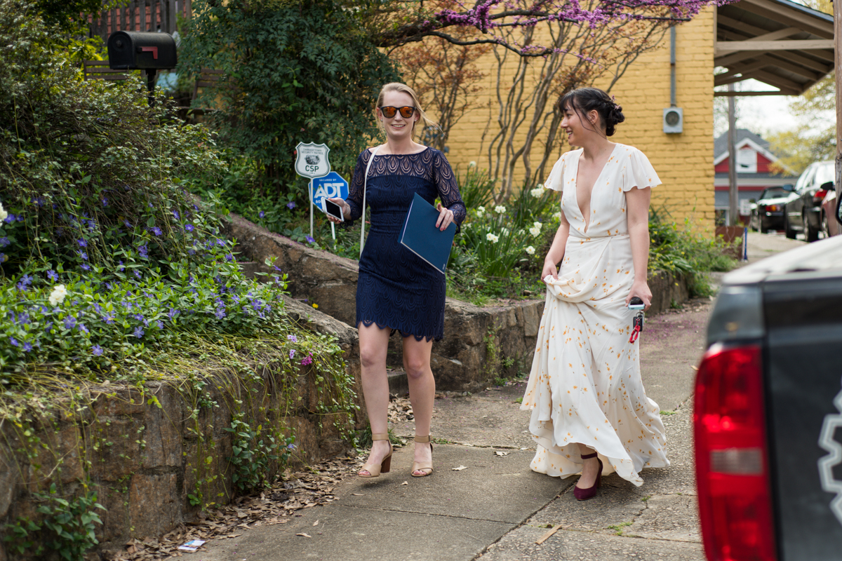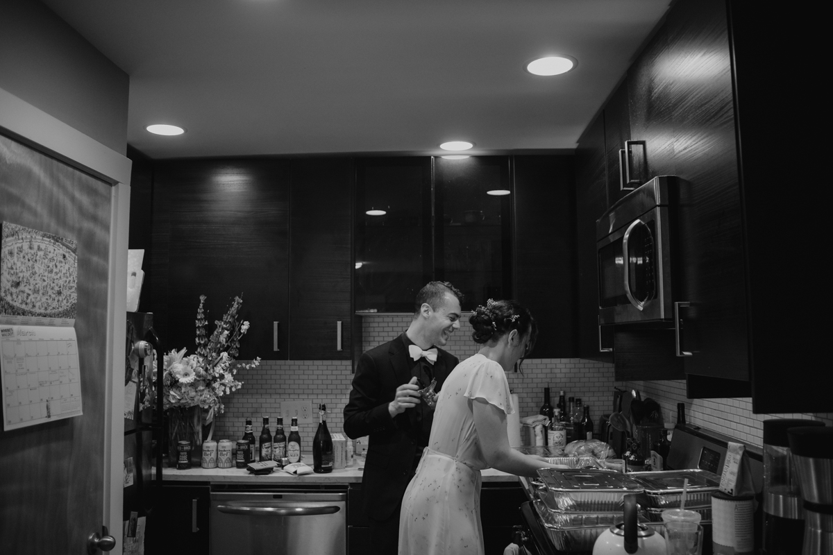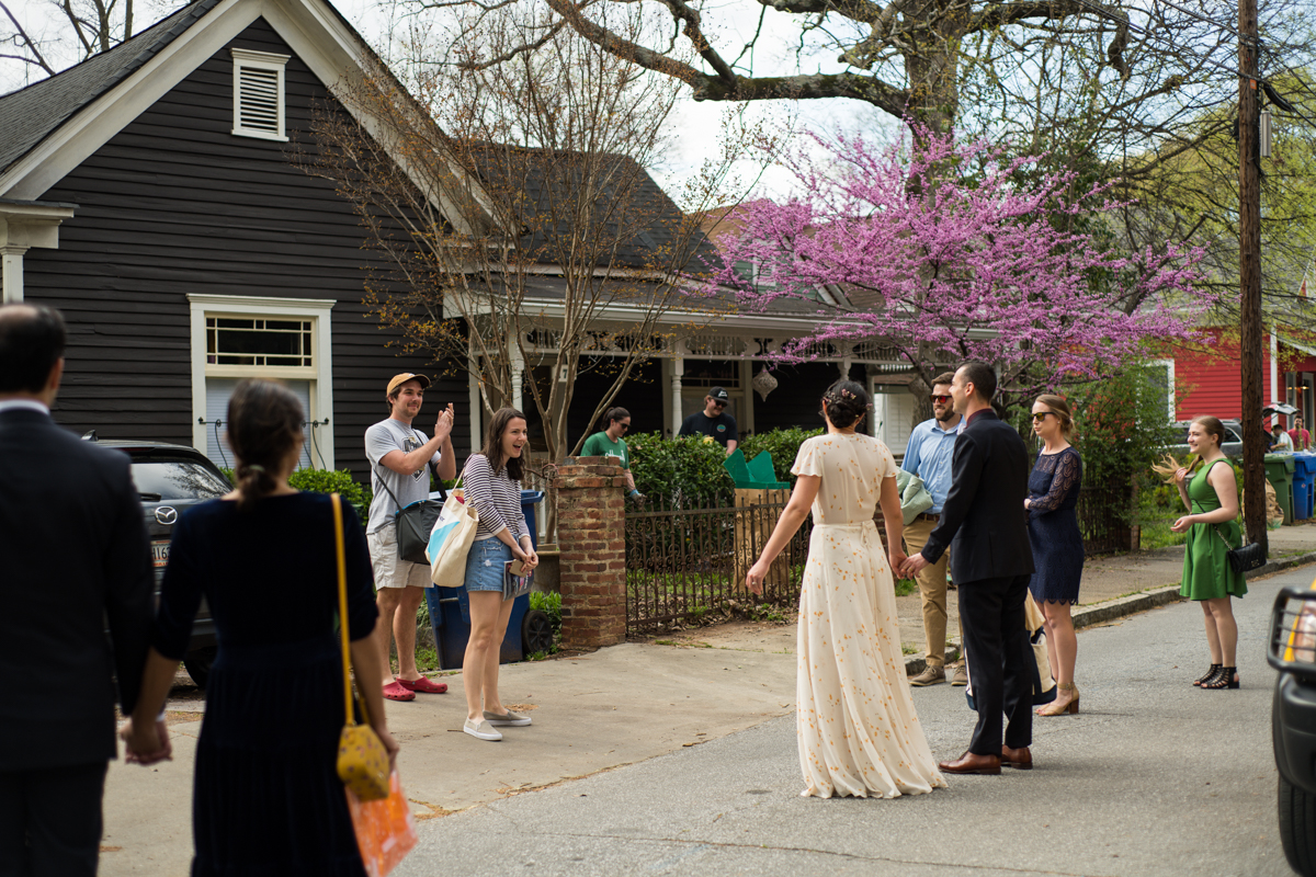 Post-ceremony, the couple had everyone over to their home. There, everyone enjoyed toasts and food from Fox Bros catering! They closed the night in a way similar to what the big day’s plans had been anyway, just miniaturized.