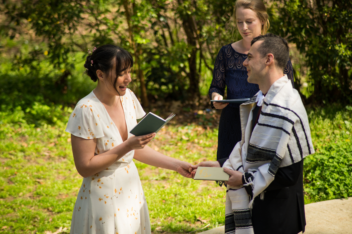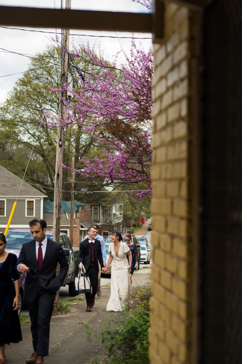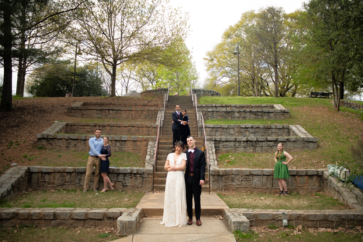 The day started off with Facetime calls with family members, each household at a time. All of their family spent the morning with the couple. It was (almost) like they would have in person, sending love and rejoicing in the excitement of the day. Steph & Jacob dressed independently, walked to the ceremony spot with one of the guests. And, then met back up in the bamboo along the back pathway of the park near their home.