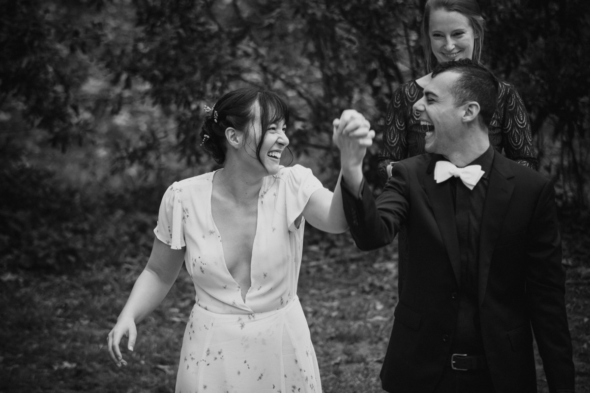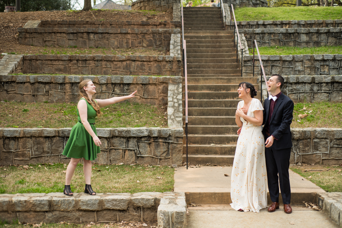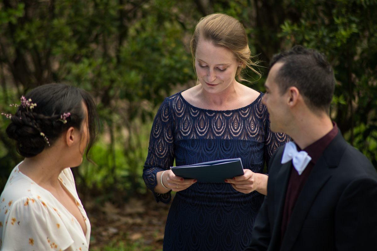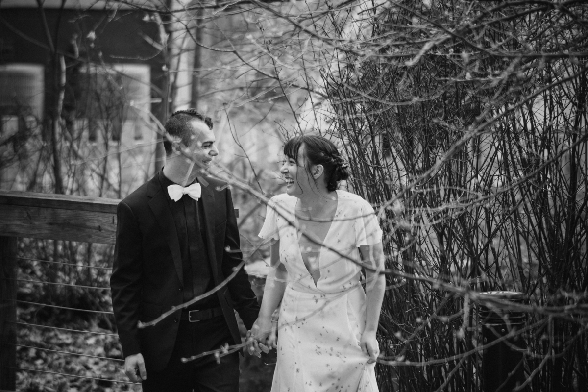 The day started off with Facetime calls with family members, each household at a time. All of their family spent the morning with the couple. It was (almost) like they would have in person, sending love and rejoicing in the excitement of the day. Steph & Jacob dressed independently, walked to the ceremony spot with one of the guests. And, then met back up in the bamboo along the back pathway of the park near their home.