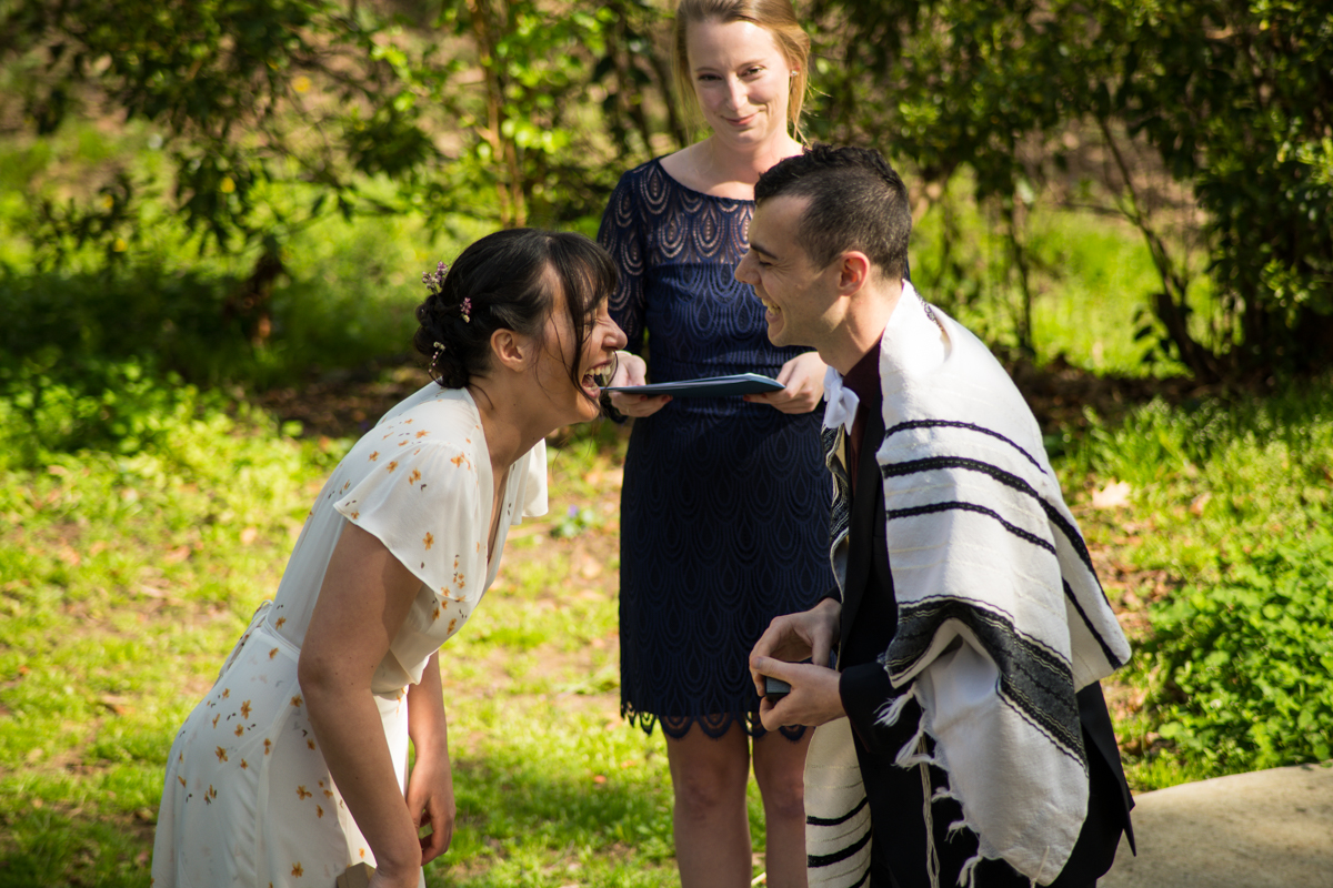 A young gentleman scootering through our ceremony just as Jacob began his vows. It was the perfect moment, made us laugh, and our friends who were there in person and our family and friends who were watching online all laughed together.