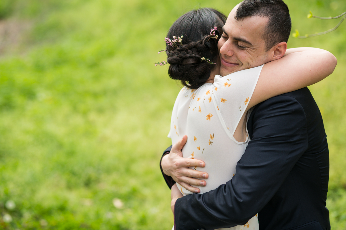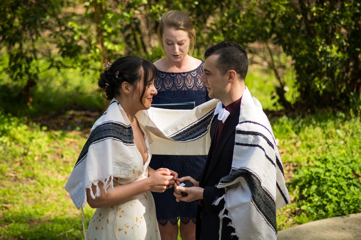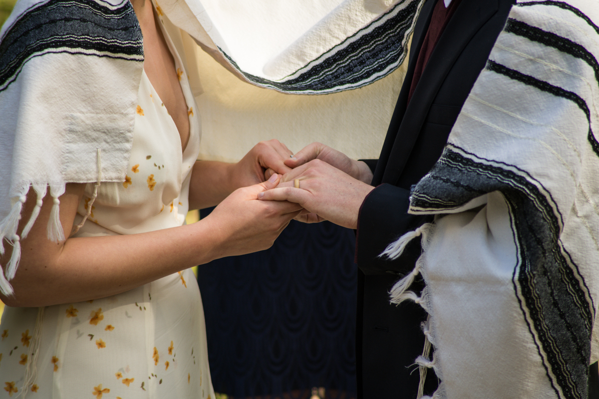 They met back up with their people, including an attendant-turned-officiant for the occasion, and got everything set up to be broadcast live so their loved ones could enjoy. The friends and family tuning in were all celebrating in their own ways from home: some in formalwear and some with champagne pours! The ceremony was full of important items incorporated from the larger wedding day plans. This including an heirloom tallit and the handmade string art that was to decorate the tables. There were beautiful vows… And, there was even a moment of bizarre levity as the ceremony was interrupted by a child on a scooter cutting through! {ah, the unpredictable nature of public parks!}