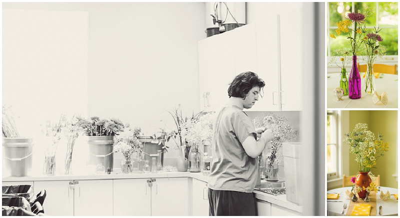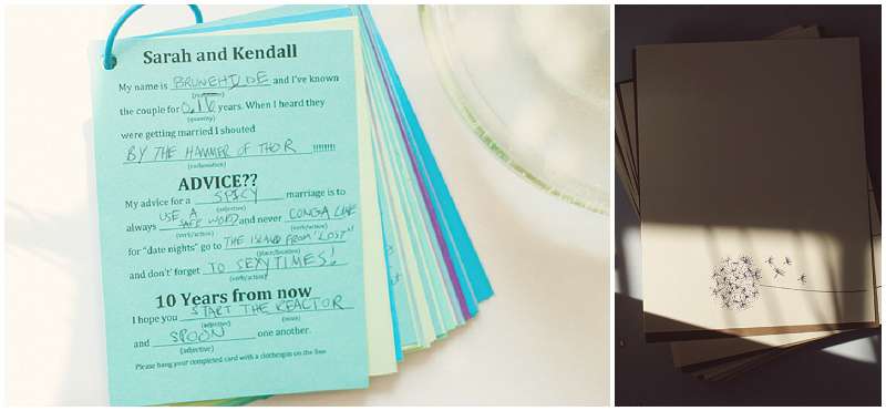 Sarah & Kendall’s day took place in two locations: the getting ready half {including the bundles of DIY} took place at their home, which was right down the street from the venue, The Solarium. It was a mix of everything the couple loves: good food, fun, and little things like dandelions, parasols, awesome quotes about love, and family.