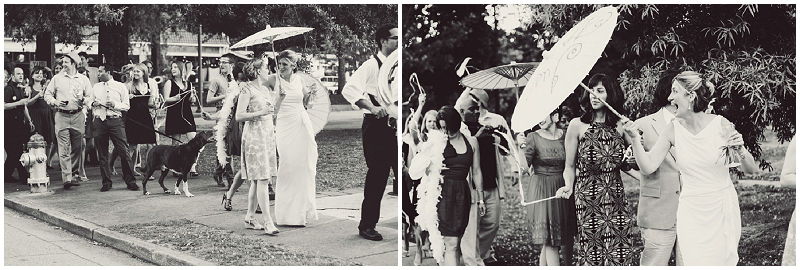 A ton of the day was put together by friends & families of the couple, including the flowers, cake, and all of the decorations. Catering {including chicken & waffles!} was by Endive. And there was a New Orleans jazz band parade down the street. Fantastic.