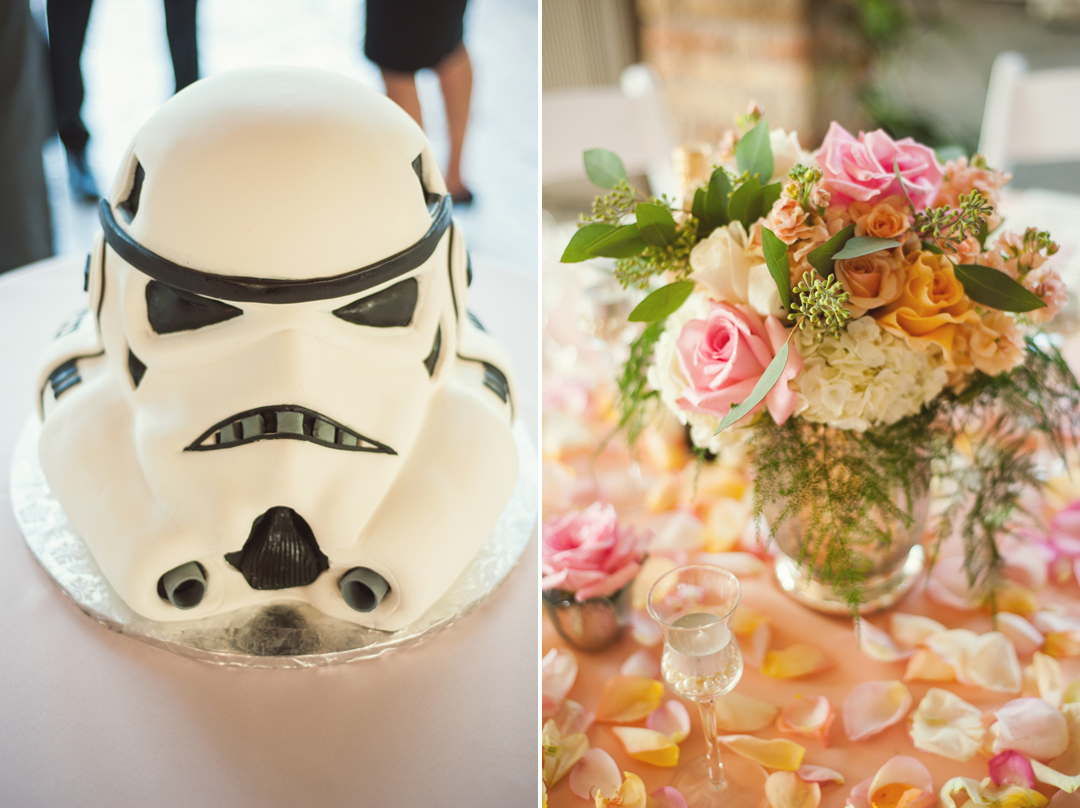 Brit had a pair of WICKED pointed heels from Prada, Ant had Star Wars suspenders + TOMS shoes for all his groomsdudes, and the two made a unity Black & Tan at the altar {a combination of Guinness for him and an IPA for her}. PLUS a Stormtrooper helmet-shaped groom’s cake. AWESOME.