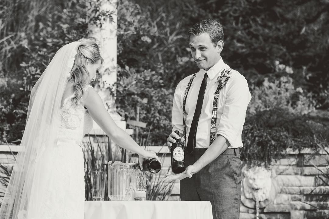 Anthony: Making a black & tan (with my Guinness and Brit’s IPA) for the unity beer ceremony.