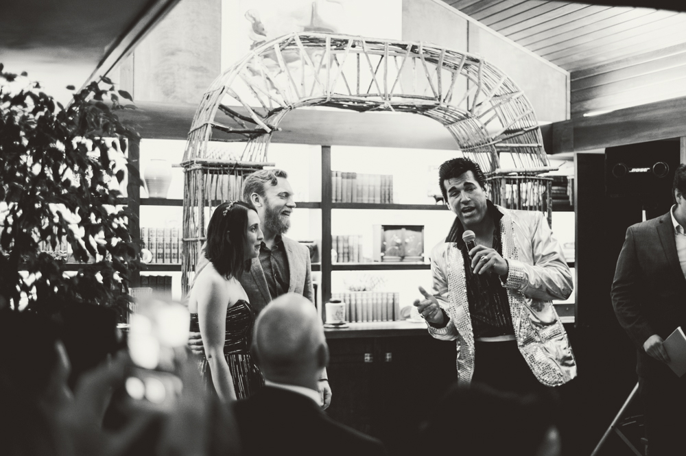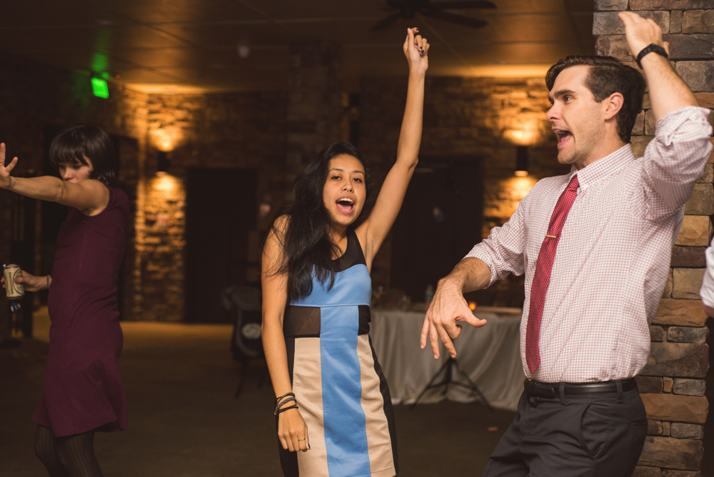 Arianna & Paul’s original plan was to hold the ceremony & cocktail hour outdoors, but this was smack dab in the middle of the rainy nonsense that made up Georgia’s Fall in 2015. The weather was a MESS. We did step outside AND ROCK the portraits {even in the rain!}. Their ceremony was perfection and was held indoors. It was truly an awesome ceremony, with laughs and sweet words and a surprise from the King of Rock-n-Roll himself. Yes. Elvis came to their rainy wedding! I love couples who roll with it! In the end what matters are the people you surround yourself with and not the weather. 😉
