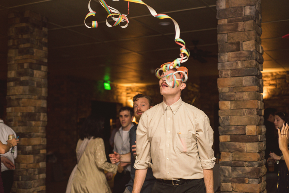 Arianna & Paul’s wedding had wackiness threaded throughout the day, from the gigantic handmade masks at the rehearsal dinner to the tons of photo booth props, light-up balloons, and streamers that came out on the dance floor, everything was a delight and I had so much fun at this wedding.
