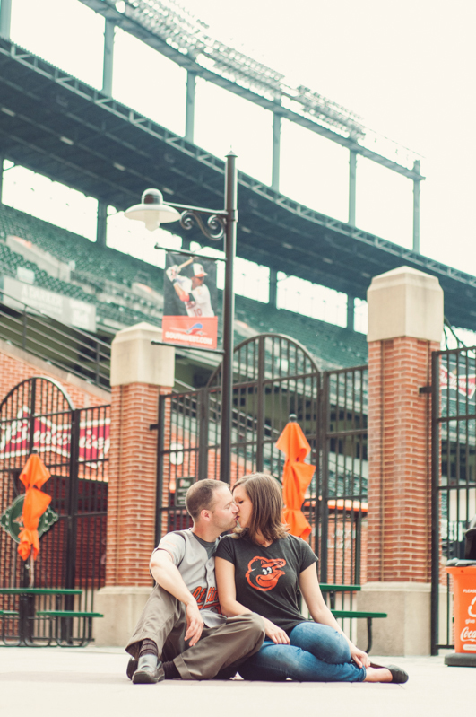I flew up to Baltimore proper for the day, and we ran around town shooting their guerrilla-style engagement session. Shooting things this way, be it wedding day portraits, engagement sessions, or day after sessions, is one of my favorite things to do. We explored the city, and I found out that Baltimore has one of the COOLEST aquariums I’ve ever seen {glass building rainforest habitat?! Yes!}. We also walked by the bay, found one of the best hills I’ve ever seen with a great view of the city, and visited the Orioles’ stadium.