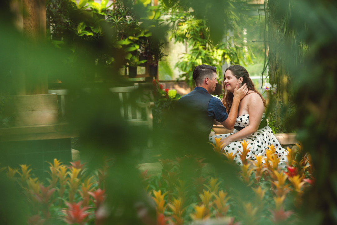 Travis proposed to Savannah right in front of the huge green goddess you see below, and it remains one of their favorite features at the Gardens. So when we met up to brainstorm together, coming up with an Atlanta Botanical Gardens engagement session was almost a no-brainer.