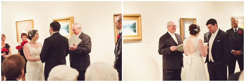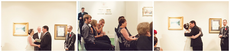Heidi & Jim had a super intimate and beautiful wedding, with a ceremony in the art gallery at the winery and a reception in the ballroom downstairs in the hotel. With a total guest list of around 30 people, it was cozy and personal, with only the people they most care about in attendance. Their colors were red, black, and white, with a focus on simplicity.