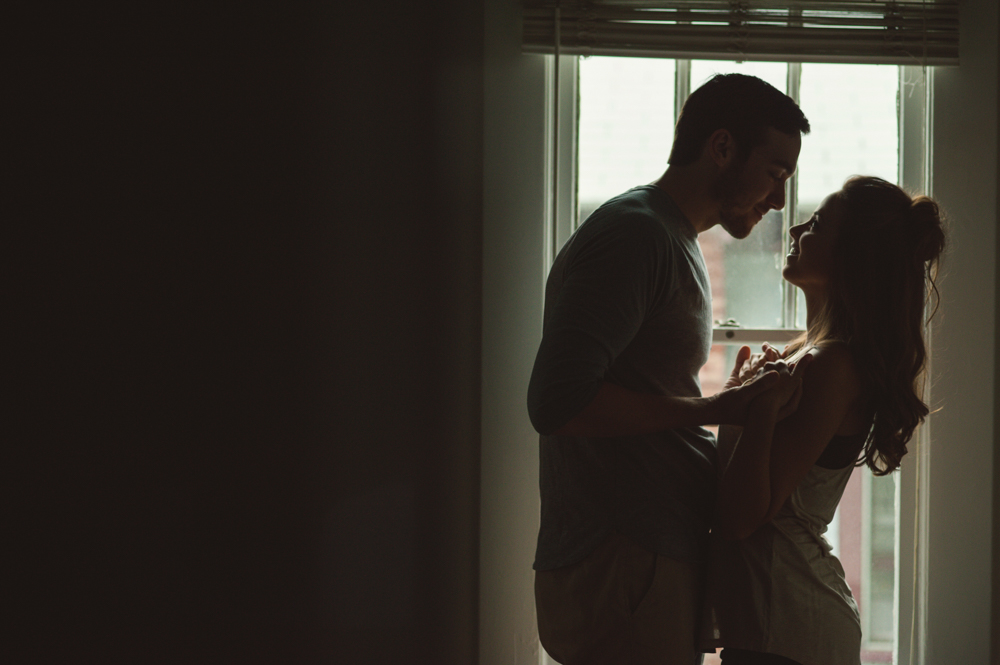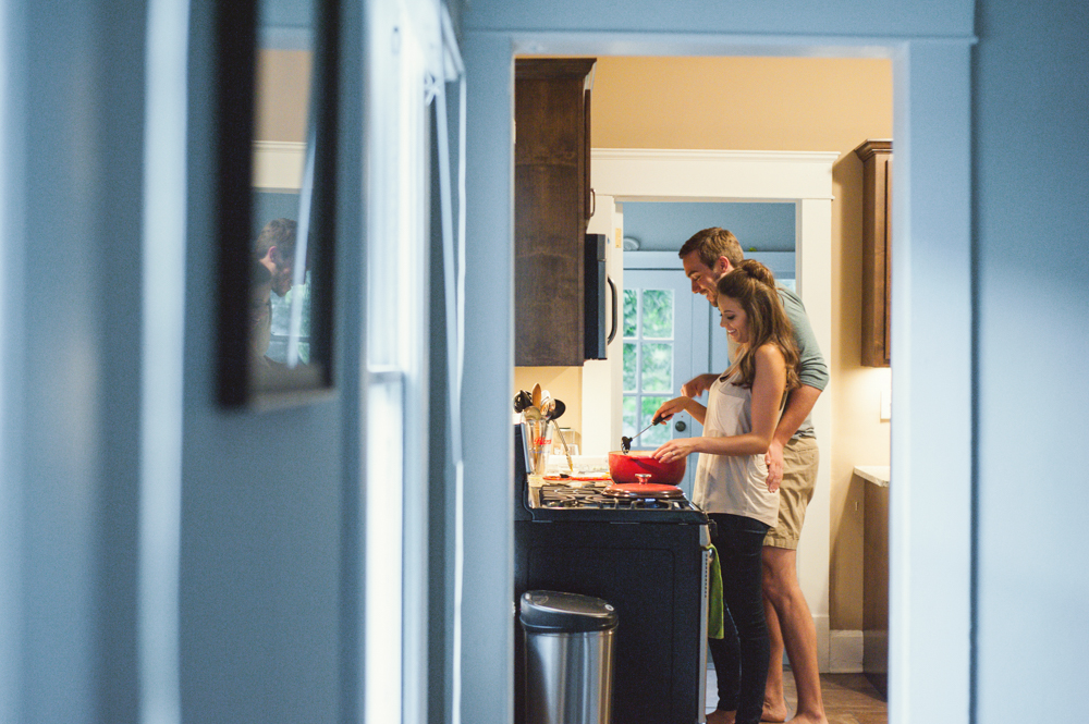 Jess & Matt’s engagement session was one part in-home and one part cemetery. Oakland Cemetery is an Atlanta cemetery and park known for being both historical and completely gorgeous {and it has a killer view of the skyline!} and it happens to be nearby where Jess & Matt live, so we decided to start out with an in-home engagement session and end up at the cemetery!