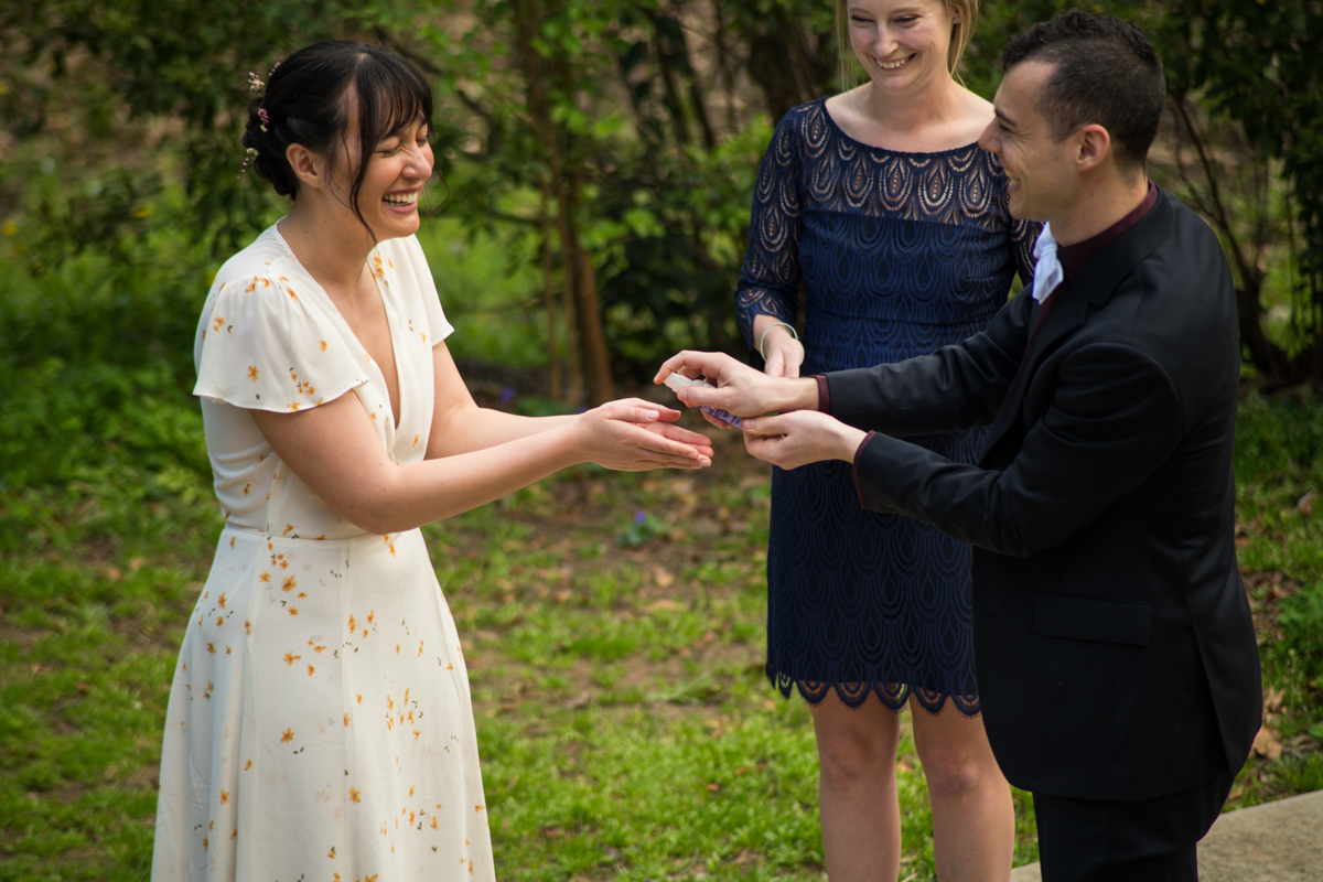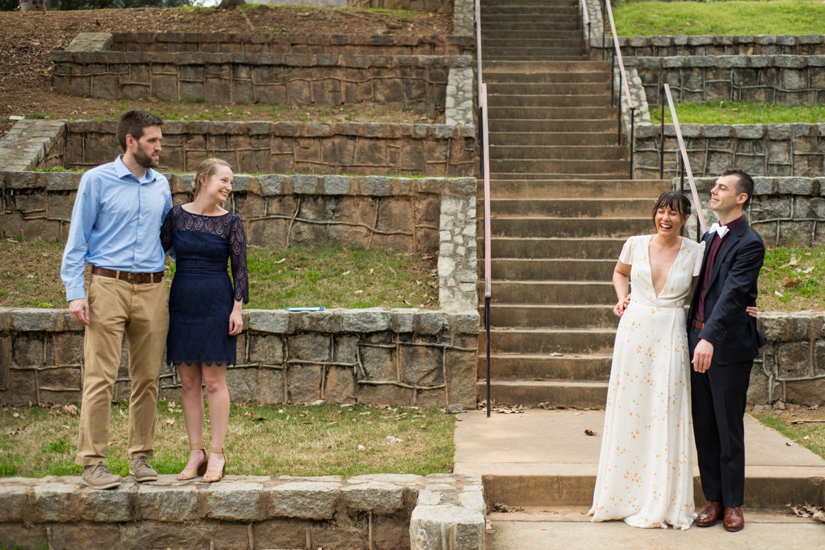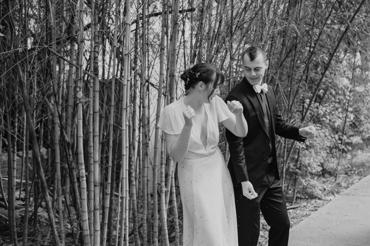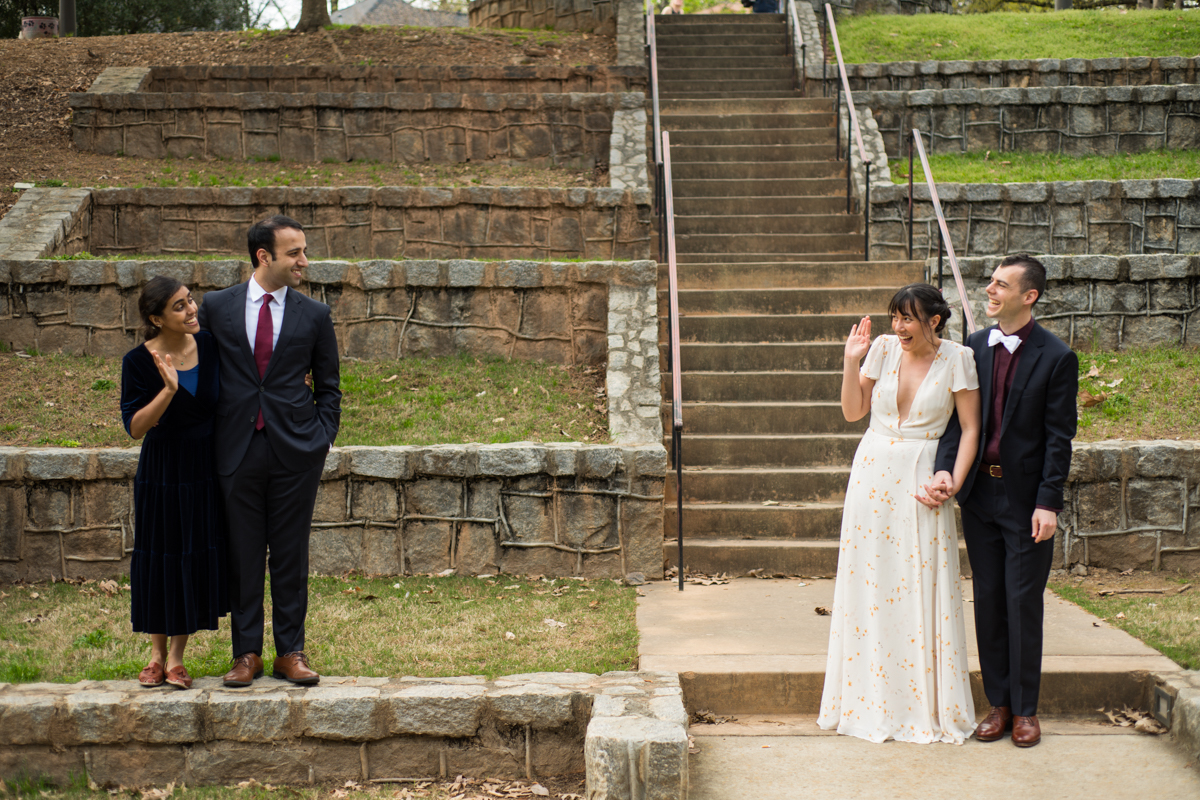 The day started off with Facetime calls with family members, each household at a time. All of their family spent the morning with the couple. It was (almost) like they would have in person, sending love and rejoicing in the excitement of the day. Steph & Jacob dressed independently, walked to the ceremony spot with one of the guests. And, then met back up in the bamboo along the back pathway of the park near their home.