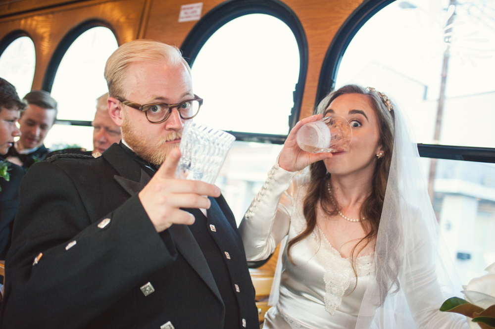 - Attire/Clothing: Ceremony Dress: Bride’s family heirloom, Reception Dress: BHLDN, Bridesmaids Dresses: Their own, Groom’s Kilt: His own, Groomsmen’s Kilts: Atlanta Kilts