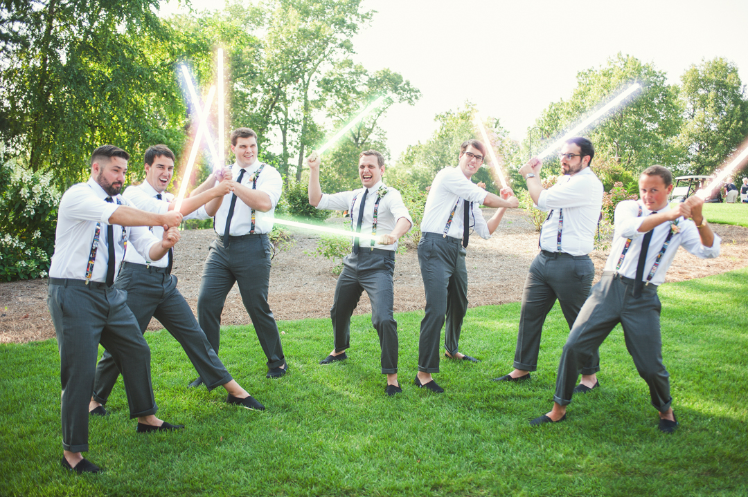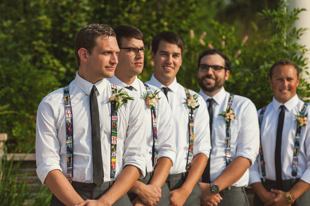 Brit had a pair of WICKED pointed heels from Prada, Ant had Star Wars suspenders + TOMS shoes for all his groomsdudes, and the two made a unity Black & Tan at the altar {a combination of Guinness for him and an IPA for her}. PLUS a Stormtrooper helmet-shaped groom’s cake. AWESOME.