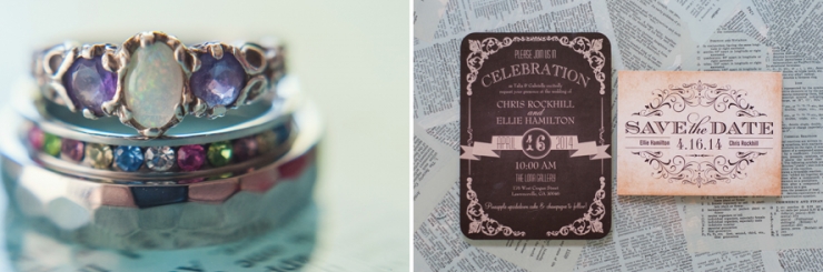 We started out at their home, where they got ready separately, then had a “first look” on their back porch. We hid inside to capture everything through the windows, which added a voyeuristic effect and allowed Ellie & Chris that much more privacy. We then gathered our things and headed to the square, then onto the gallery.
